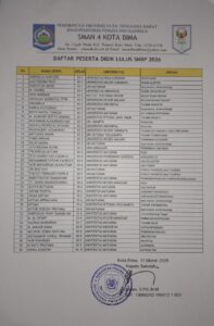 Kota Bima, 31 Maret 2026 – Pengumuman hasil Seleksi Nasional Berdasarkan Prestasi (SNBP) tahun 2026 yang diumumkan pada Sabtu lalu menjadi momen yang sangat sakral dan penuh gengsi bagi sekolah-sekolah di Kota dan Kabupaten Bima Khususnya NTB. Salah satu sekolah yang kembali menorehkan prestasi gemilang adalah SMAN 4 Kota Bima, yang berhasil meluluskan sebanyak 40 siswa-siswinya melalui jalur prestasi berdasarkan kelayakan yang dikeluarkan panitia SNBP.
